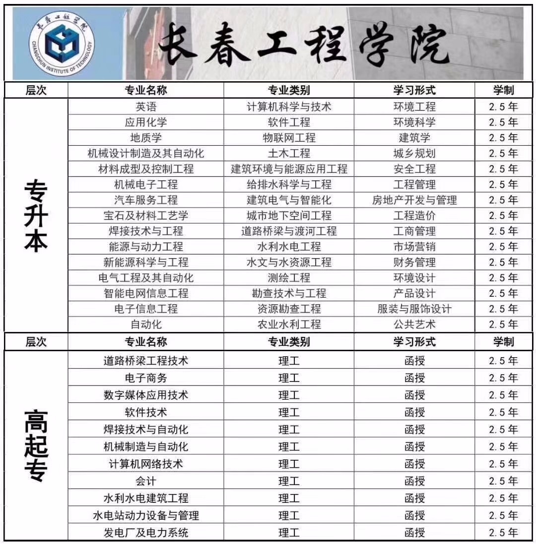 长春工程学院成人高考招生简章